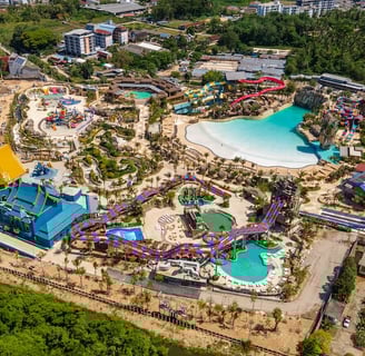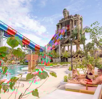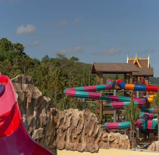 另一个不容错过的地方是普吉岛安达曼达水上乐园 (ANDAMANDA Phuket Waterpark)!该乐园是普吉岛的大型休闲娱乐综合体,分为五个不同的区域,主题是泰国的自然宝藏和安达曼海岸线的冒险故事!所有区域都采用泰式建筑设计,包括餐厅和零售区。园区内共有 17 个游乐设施、32 个滑梯和 8 个景点,以及老少皆宜的奇幻游戏台!