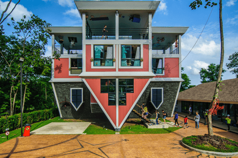 另一个景点是颠倒屋 (Baan Teelanka),这是泰国第一栋也是唯一一栋上下颠倒的房屋!由于其独特的设计,该景点成为了一个网红拍照打卡地。房屋总共有三层,屋内有很多房间,家具齐全,你可以拍下自己在天花板上行走的照片!除了拍摄超现实主义照片外,你还可以参加密室逃脱,在上下颠倒的环境中解开谜题!共有两个主题房间可供选择。如果你与朋友或家人同游,并且你们都喜欢解谜游戏,那么这栋房子一定不会让你们“掉下来”(让你们失望),因为你们将站在天花板上。
