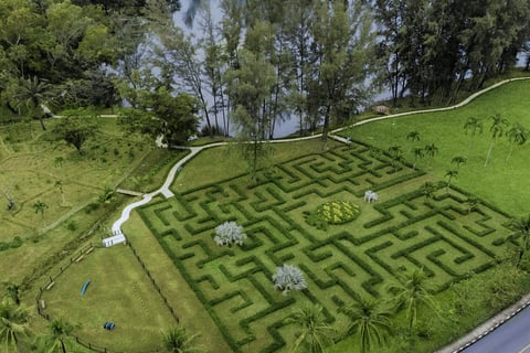 普吉岛迷宫花园 (A-Maze-in-Phuket) 是一个花园迷宫,由著名迷宫设计师 Adrian Fisher 设计。该迷宫占地 1000 平方米,由高大的灌木丛组成,因而具有童话般的质感。参观这个奇妙的景点,用你的方式走出迷宫困境!