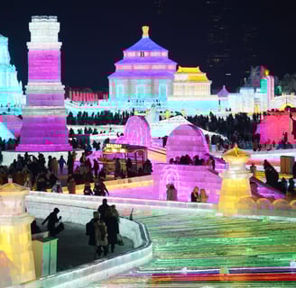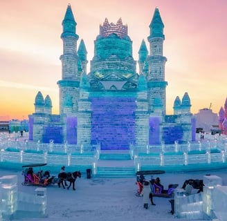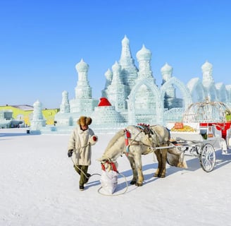 一年一度的冰雪主题嘉年华,从每年的圣诞节至次年三月初期间开放。这个节日是世界上最盛大的寒冷天气庆祝活动之一。 吸引了来自地球各地的数百万人,这是一个为期一个月的冰雪庆典,展示了从世界上一些最大的冰雕到亚布力高山滑雪和冬季游泳等有趣的冬季运动在松花江。